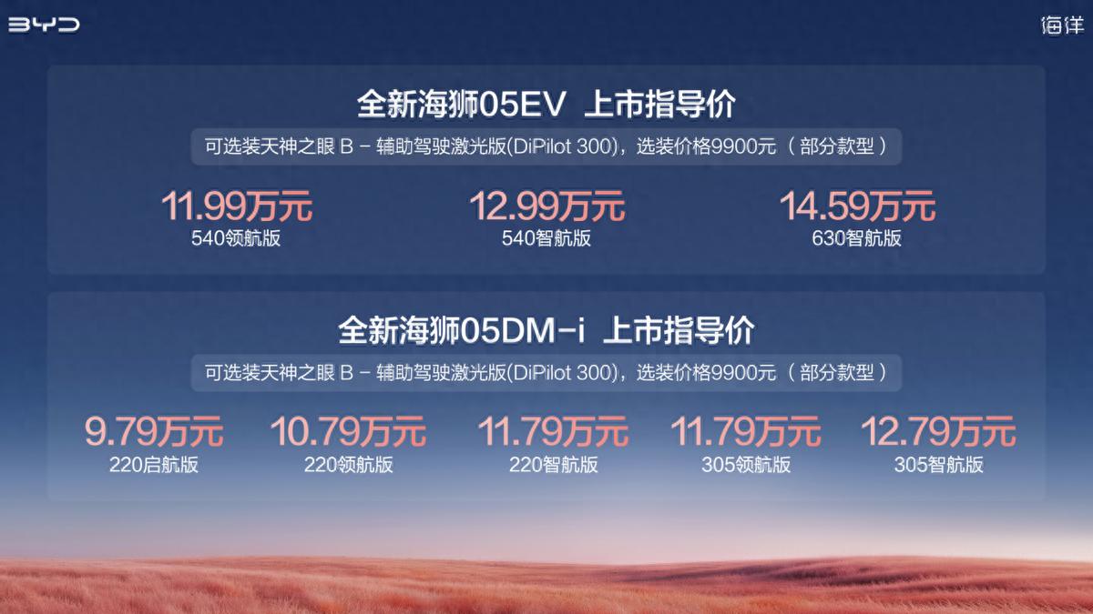 综合来看,新车搭载了非常多的比亚迪的高精尖技术,第二代刀片电池、闪充技术、天神之眼B、云辇-C,从高端车型的专属,变成了现在全民可享的标准配置。为普通家庭带来了更高品质、更省心的家用出行选择,不过需注意比亚迪二代刀片电池仅装配在海狮05 EV上。