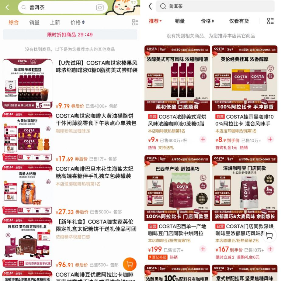 记者查询主流电商平台发现,天猫平台“COSTA官方旗舰店”和京东平台“COSTA咖啡京东自营旗舰店”均未销售相关普洱茶产品。此外,市场上如大益、八马茶业等知名品牌所售普洱茶,普遍仅标注“在通风、阴凉、干燥、无异味无污染的环境下长期保存”,久久久久亚洲AV无码专区桃色并未设定具体固定年限。